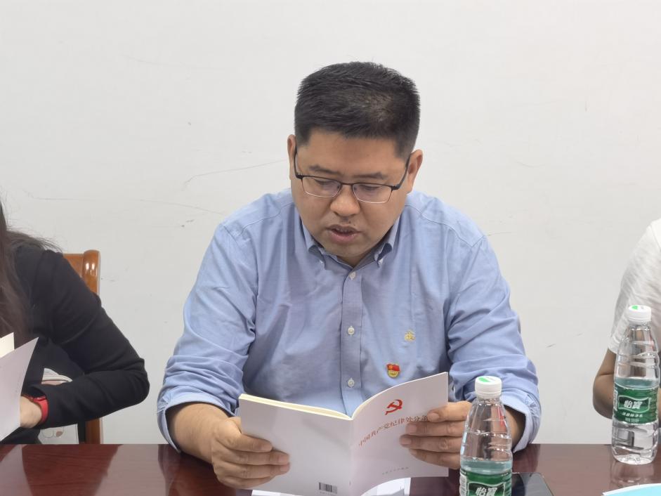 5月8日上午,真人百家乐游戏 党委在电光B楼212会议室举办党纪学习教育专题读书班,逐条学习《中国共产党纪律处分条例》部分章节,真人百家乐游戏 党委书记高翔主持学习会,领导班子成员、教工党支部书记参加学习。