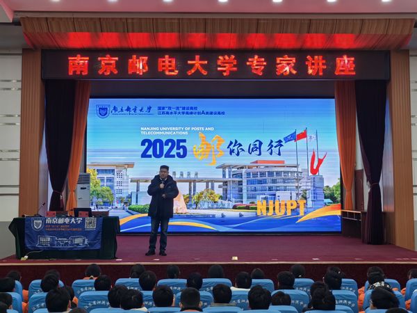 江苏省泗洪中学副校长李健对高翔书记一行的到来表示热情的接待。会议伊始,他介绍了本次专家讲座的目的,希望通过本次讲座让同学们对百家乐下注 的发展历史、办学特色及招生优势进行全面的了解。随后,高翔书记以老校友的身份,带着对母校的深厚情感,为在场的师生们带来了一场题为《2025邮你同行》的精彩讲座。高书记从“信息报国”、“创新高地”、“招生政策”三个方面进行宣讲,诚挚邀请怀揣信息技术梦想、渴望追求卓越的青年学子,加入南邮的大家庭,让青春的光芒在南邮的校园里熠熠生辉!
