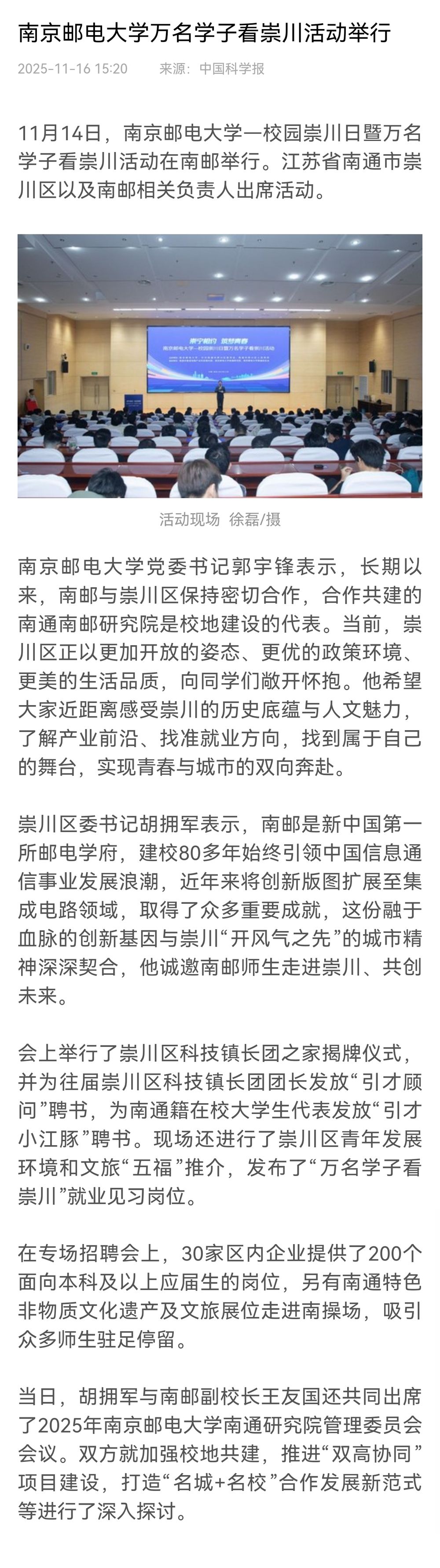 【科学网】百家乐下注 万名学子看崇川活动举行
