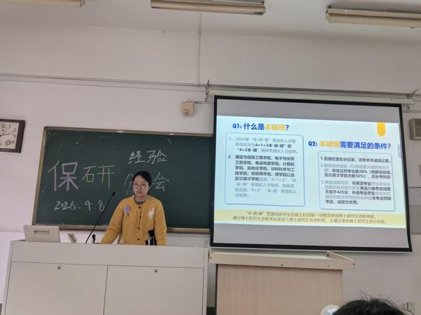 为帮助低年级同学提前了解保研流程与备考策略,搭建朋辈经验传承平台,进一步营造真人百家乐游戏 勤学善思、互帮互助的良好学风,为同学们未来的升学深造指明方向、注入动力。4月8日14点,真人百家乐游戏 保研经验分享交流会在教三103教室顺利举行。本次活动由23级微电子专业钱姿安同学主持,大二、大三学子参与学习交流。